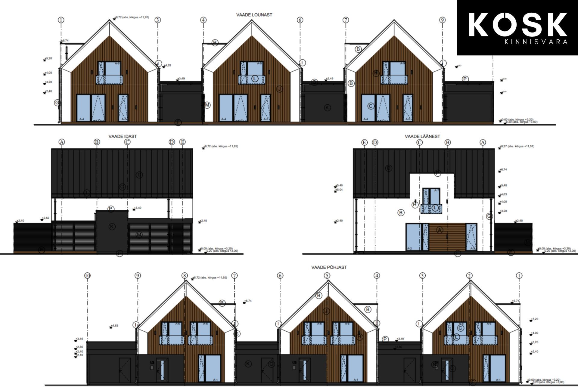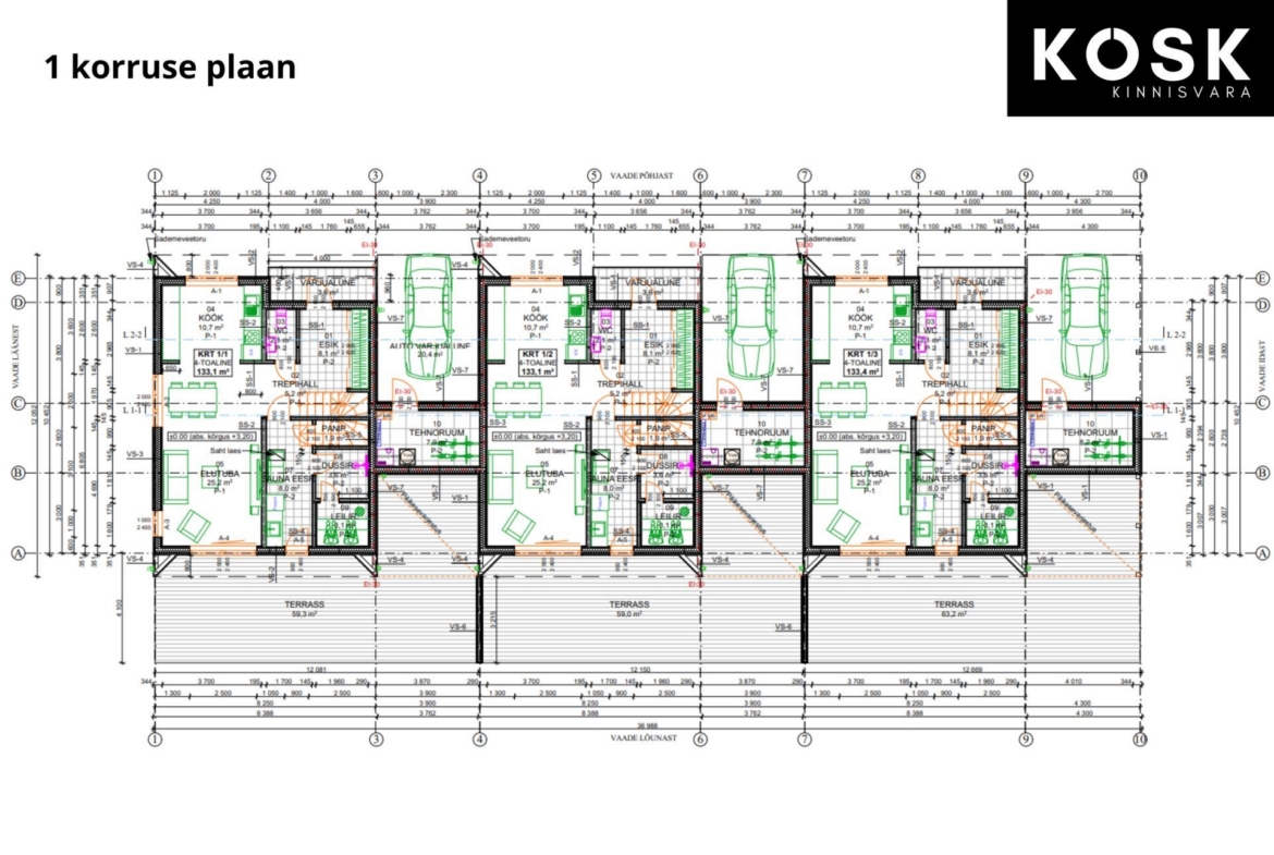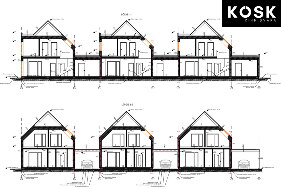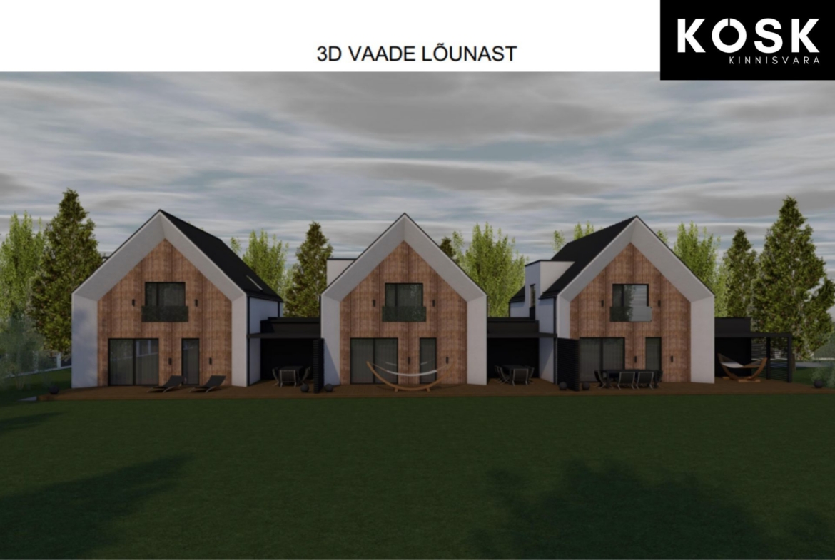 Projekti järgselt ühele kinnistule 3 boksiga ridaelamu.